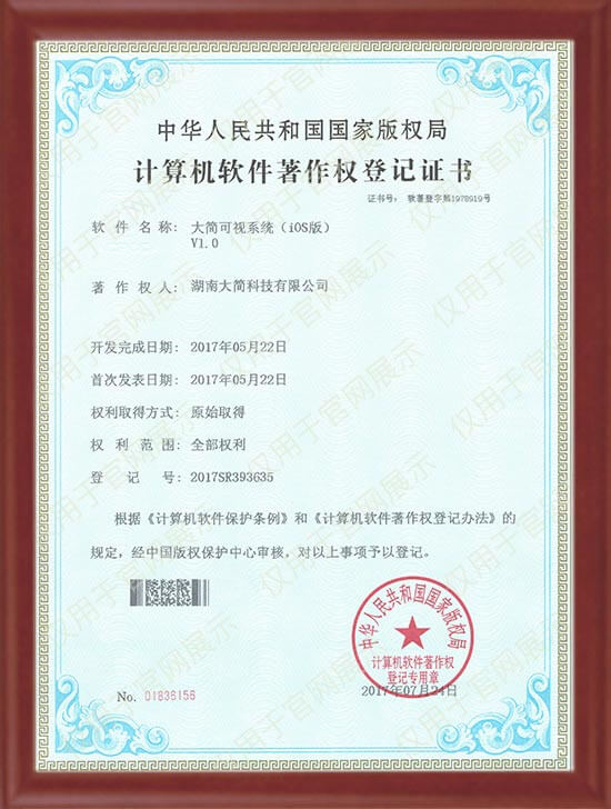 公司主要從事互聯網行業的產品創新與運營,擁有大簡智慧事件、大簡可視、花田喜視等多款創新性產品。其中明星產品“大簡可視”是一個專業提供可視化服務的平臺,可幫助政府部門以及企事業單位實現政(企事)務大數據治理和數據的可視化展示。除此之外,還可滿足企業在品牌宣傳、業務數據掌控、管理創新方面的需求。用戶可以通過簡單的操作、方便的展示授權,根據自身需求快速高效的實現業務數據的可視化和品牌宣傳。系統兼容手機、Pad、智能電視、電子白板多種屏設備。